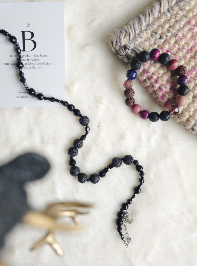 4) melnā maģija no oniksa un stikla kristāliem. Rotaļīgi eleganta melnā klasika.
