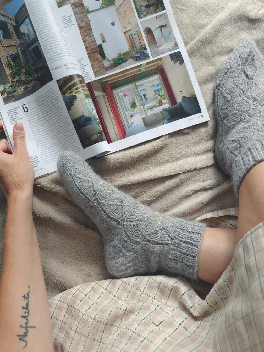 Škiet šis adītais aksesuārs nebūt vairs nav tikai praktiskuma, bet arī estētikas iemiesojums. Nav taču vairs jāskaidro par nebeidzamo dziju pārpilnību veikalu plauktos un dizaina nebeidzamajām iespējām ritinot uz leju Pinterest atradumus. Ik viens manis adītais zeķu pāris sākas ar dziju apjūsmošanu vaikalā, pēcāk salāgojot ar reālajām ( vai ne tik reālām) vajadzībām. Nākamais solis ir piemeklēt saderīgus pavedienus, lai satītu jau unikālu kamolu- gan praktiskos, gan estētiskos nolūkos. Lai katrs zeķu pārītis īpašāks par īpašu. Jau esmu minējusi, ka adu, kad vēlos, nevis vajag. Pārpildīti i-veikala plaukti nav mans mērķis, bet zeķu pāris ar ieadītām labākajām emocijām un manu radīšanas baudu gan. Iekārtoties ērtāk, un lai top!!