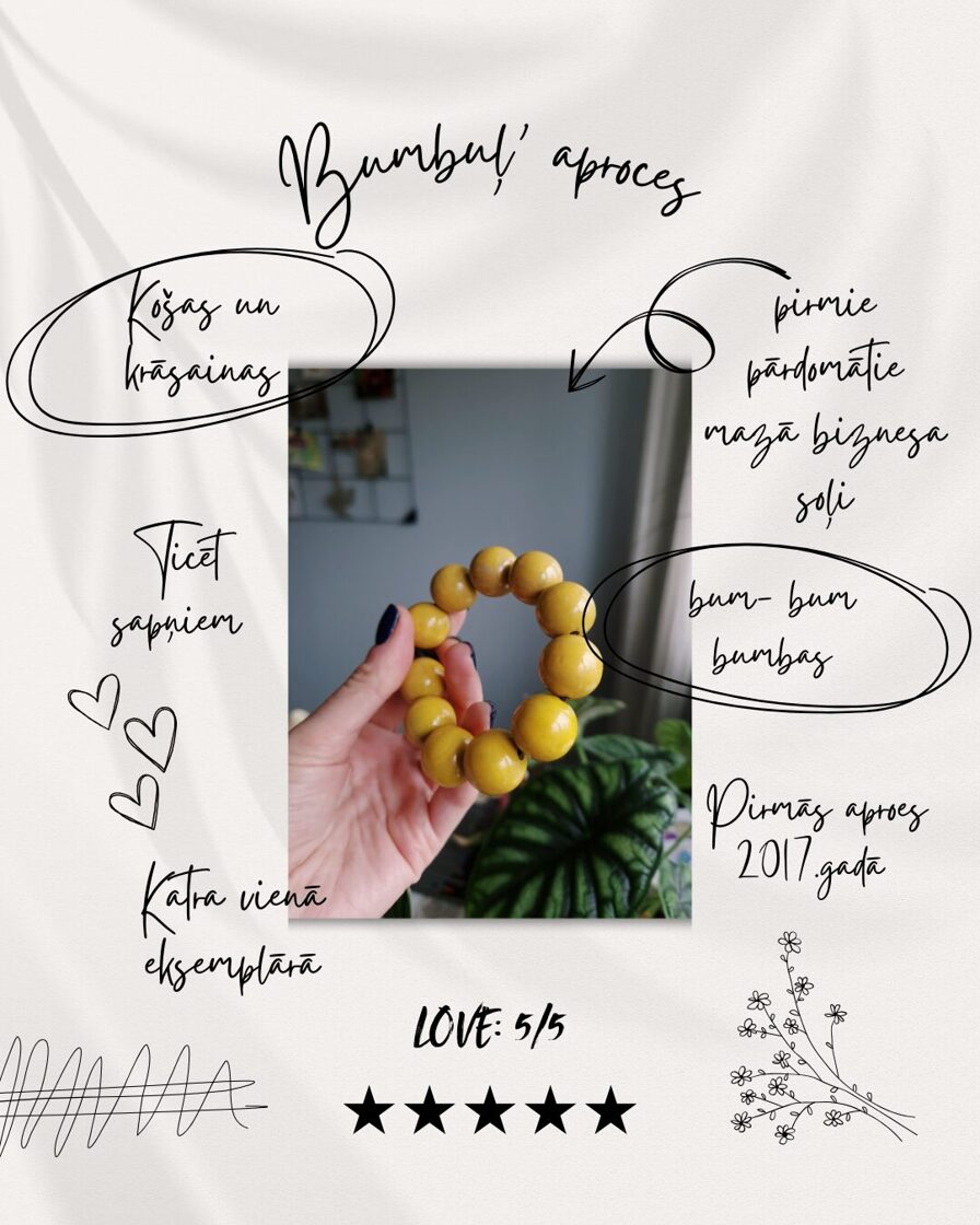 Šķiet tieši ar Bumbuļ' aprocēm aizsākās mans apzinātais radošais ceļš. Pirmie manis pārdomātie soļi sava mazā biznesa veidošanā. Sevis pārādīšana Instagram, Etsy veikals un ta pakārtotie gājieni uz Latvijas Pastu.